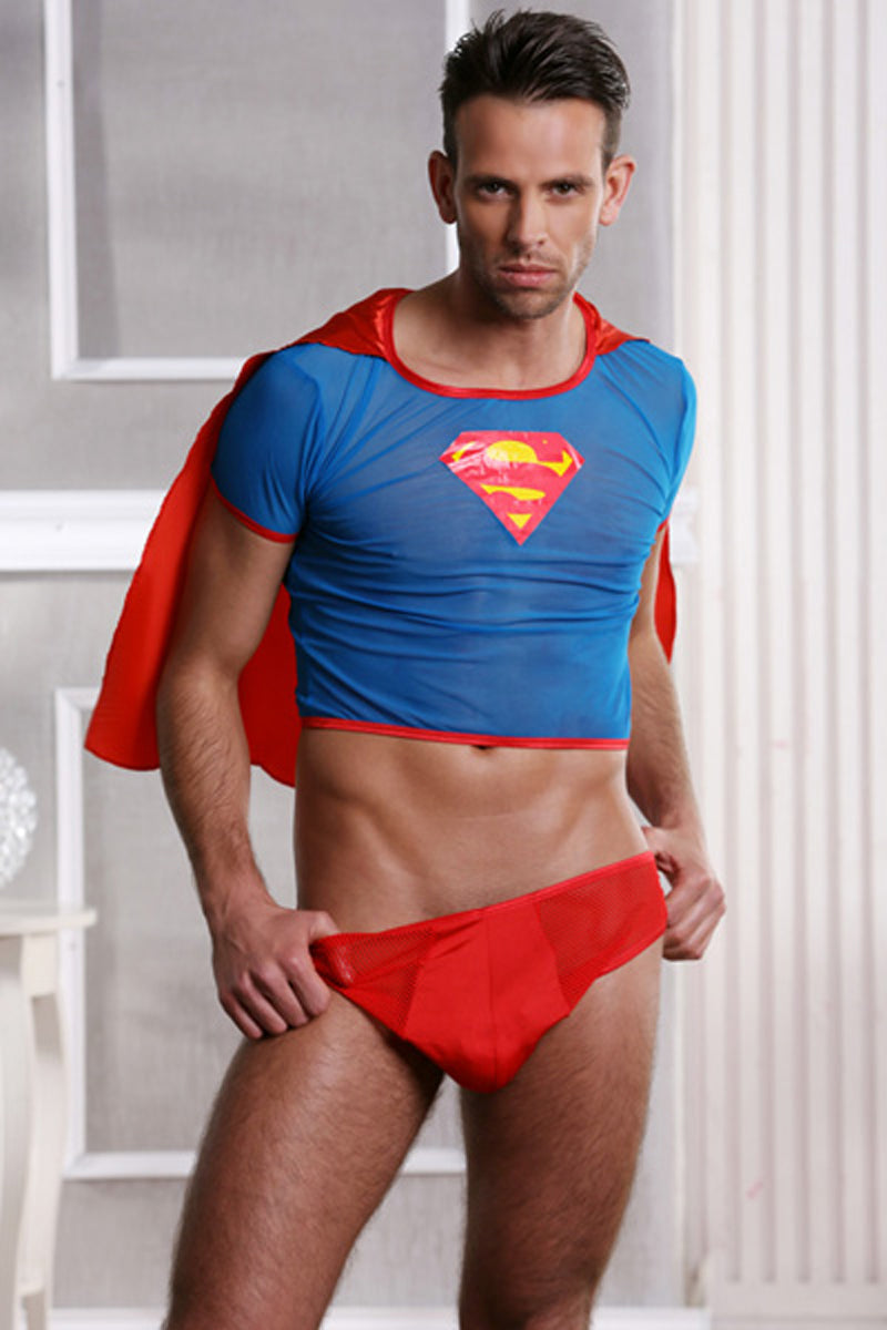 Super man - 2 piece set - 'S' symbol on mesh top with cloak and fishnet boxers